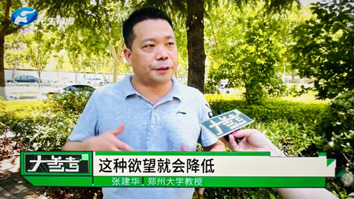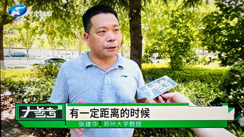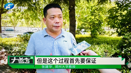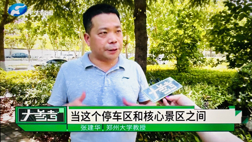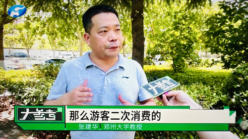 2024年7月4日上午,郑州大学张建华教授在盛和苑南门接受河南电视台记者采访,点评被指“收割”游客的景区摆渡车。访谈于7月9日晚在河南电视台民生频道“大参考”栏目中播出。