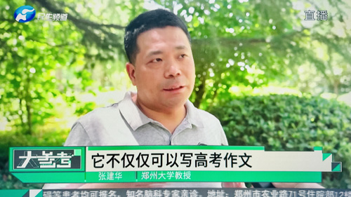2023年6月8日中午,郑州大学张建华教授在盛和苑南门接受河南电视台记者采访,再次点评生成式AI。访谈于当日晚在河南电视台民生频道大参考栏目中播出。