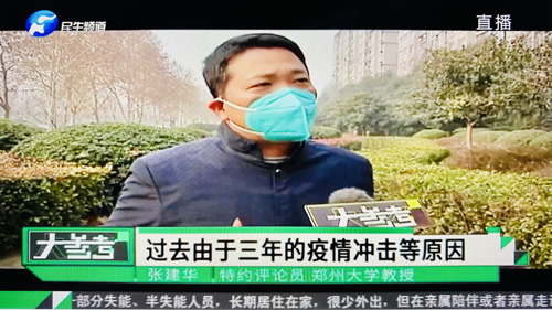 张建华教授在河南电视台大参考栏目,点评郑州市打出政策组合拳、促房地产市场回暖(2023-1-8)