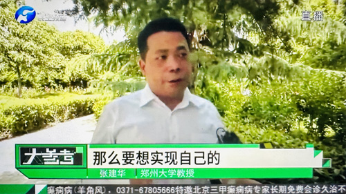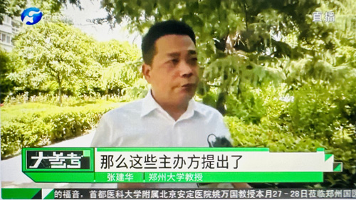 2023年5月16日上午,郑州大学张建华教授在盛和苑南门接受河南电视台记者采访,点评商演实名制售票话题。访谈于当晚在河南电视台民生频道大参考栏目中播出。