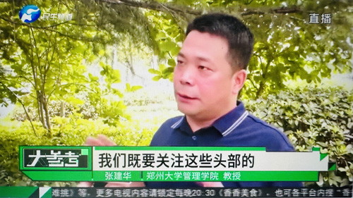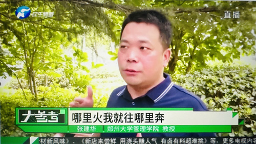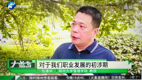 2023年7月12日中午,郑州大学张建华教授在盛和苑南门接受河南电视台记者采访,点评毕业生职业选择与职业生涯规划。访谈于当晚在河南电视台民生频道大参考栏目中播出。