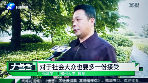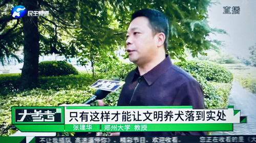 2023年10月17日上午,郑州大学张建华教授在盛和苑南门接受河南电视台记者采访,点评文明养犬的话题。访谈于当晚在河南电视台民生频道大参考栏目中播出。
