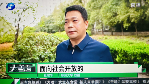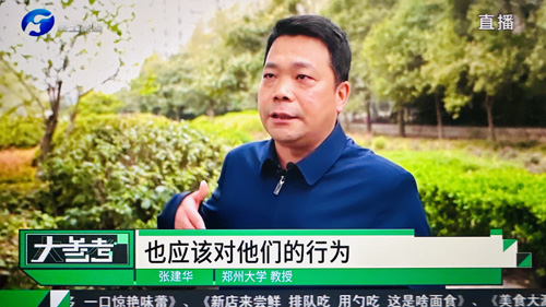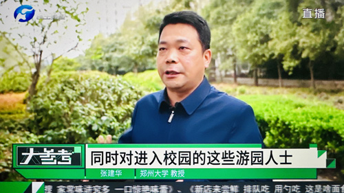 2024年4月5日晚,郑州大学张建华教授在河南电视台“大参考”栏目,点评对大学校园游客乱象的治理话题。