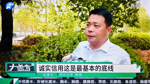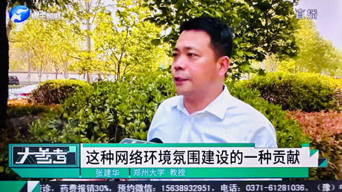 2024年4月13日中午,郑州大学张建华教授在盛和苑南门接受河南电视台记者采访,点评国家对网络谣言治理的话题。访谈于当晚在河南电视台民生频道“大参考”栏目中播出。