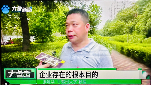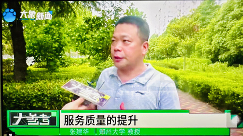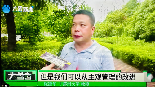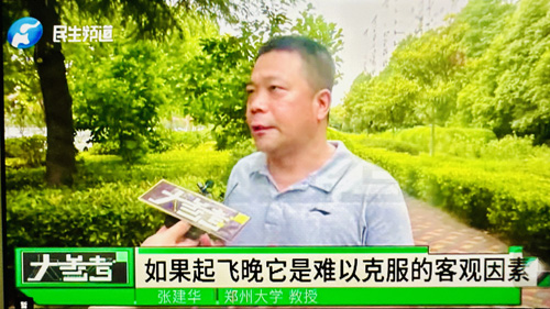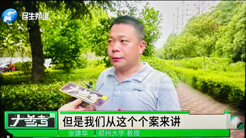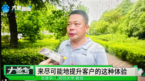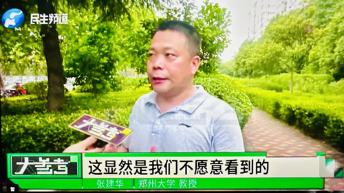 2024年7月5日上午,郑州大学张建华教授在盛和苑南门接受河南电视台记者采访,点评航班晚点却不开空调导致乘客中暑的事件。访谈于7月5日晚在河南电视台民生频道“大参考”栏目中播出。