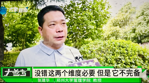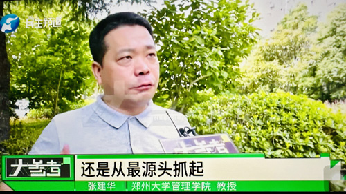 2024年7月19日上午,郑州大学张建华教授在盛和苑南门接受河南电视台记者采访,点评暑期对未成年人沉迷网络游戏治理的话题。访谈于当晚在河南电视台民生频道“大参考”栏目中播出。