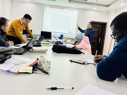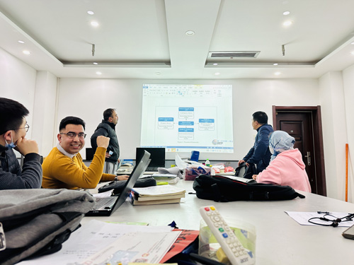 2023年3月2日晚,在张建华教授所指导的博士研究生召开研究选题讨论会,曹子傲、Sajjad、Usman和Sherani同学分别做研究介绍,张教授与其他同学与他们分别进行了热烈讨论与深入交流。