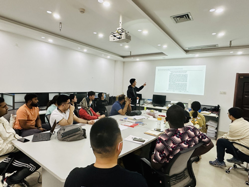 2023年5月7日晚,在张建华教授所指导的研究生(包括博士生和硕士生)召开本学期第六次学术交流会,与会同学分别对各自的研究情况以及论文撰写进度进行了汇报。张教授、杜小云博士和其他同学针对各自的汇报内容与汇报人进行了讨论与交流,现场气氛热烈(现场图集,点击查看)。