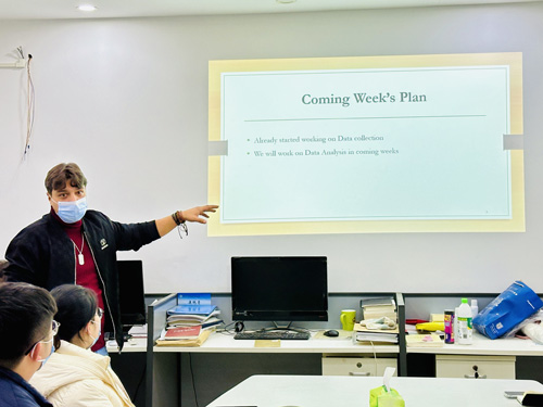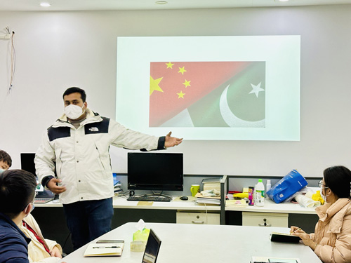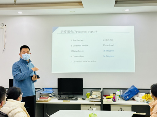 2023年11月26日晚,张建华教授主持召开2023-2024学年第一学期第10次研究生(硕士&博士)学术交流会暨总第67次大人文交流会。会上,博士生李霏/Umair、Abbas同学分别作了人文演讲;而后,隶属于Batch 3的博士生Maria、Azmat、曹子傲、刘金燕以及硕士生张梦珂、张清淋同学分别进行了学术汇报,张教授提出了相应的学术见解与改进建议。
