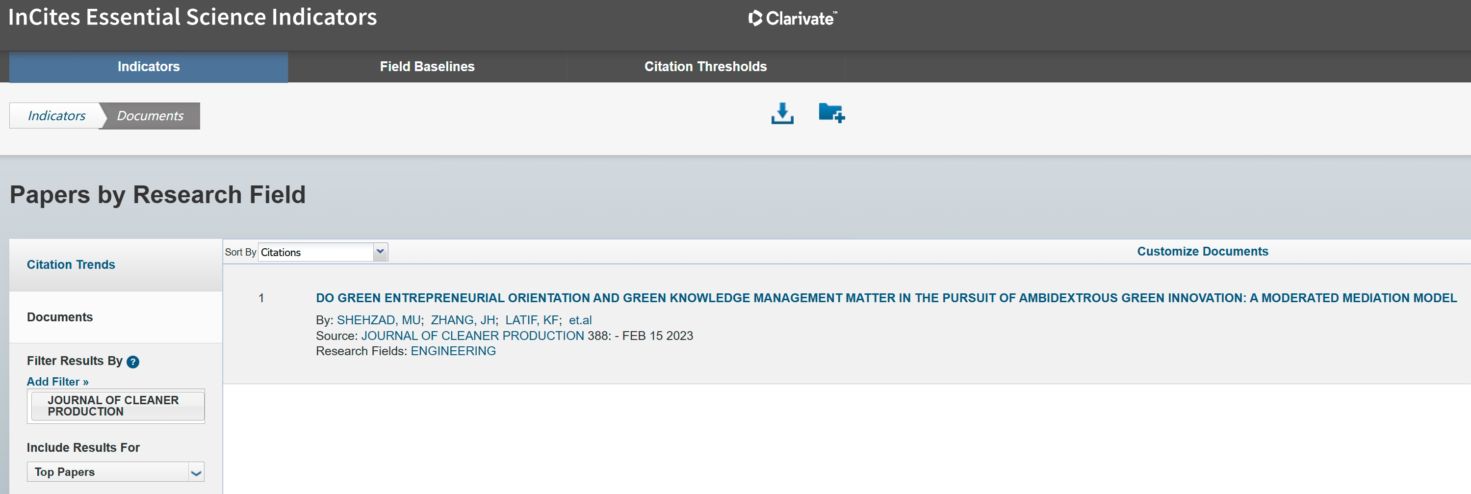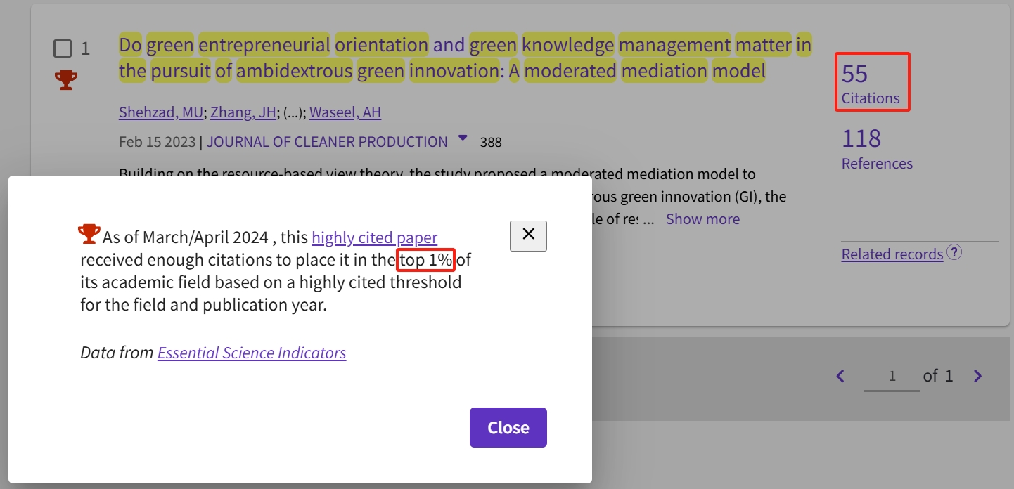 2024年8月23日获悉,张建华教授研究团队于2023年2月发表在《JOURNAL OF CLEANER PRODUCTION》的论文"Do green entrepreneurial orientation and green knowledge management matter in the pursuit of ambidextrous green innovation: A moderated mediation model",入选2024年3/4月份高被引论文。《JOURNAL OF CLEANER PRODUCTION 》位居SSCI 版本ENGINEERING学科Q1,5年响应因子10.2。这是该团队继在“Economics & Business”领域入选高被引论文之后的再突破。