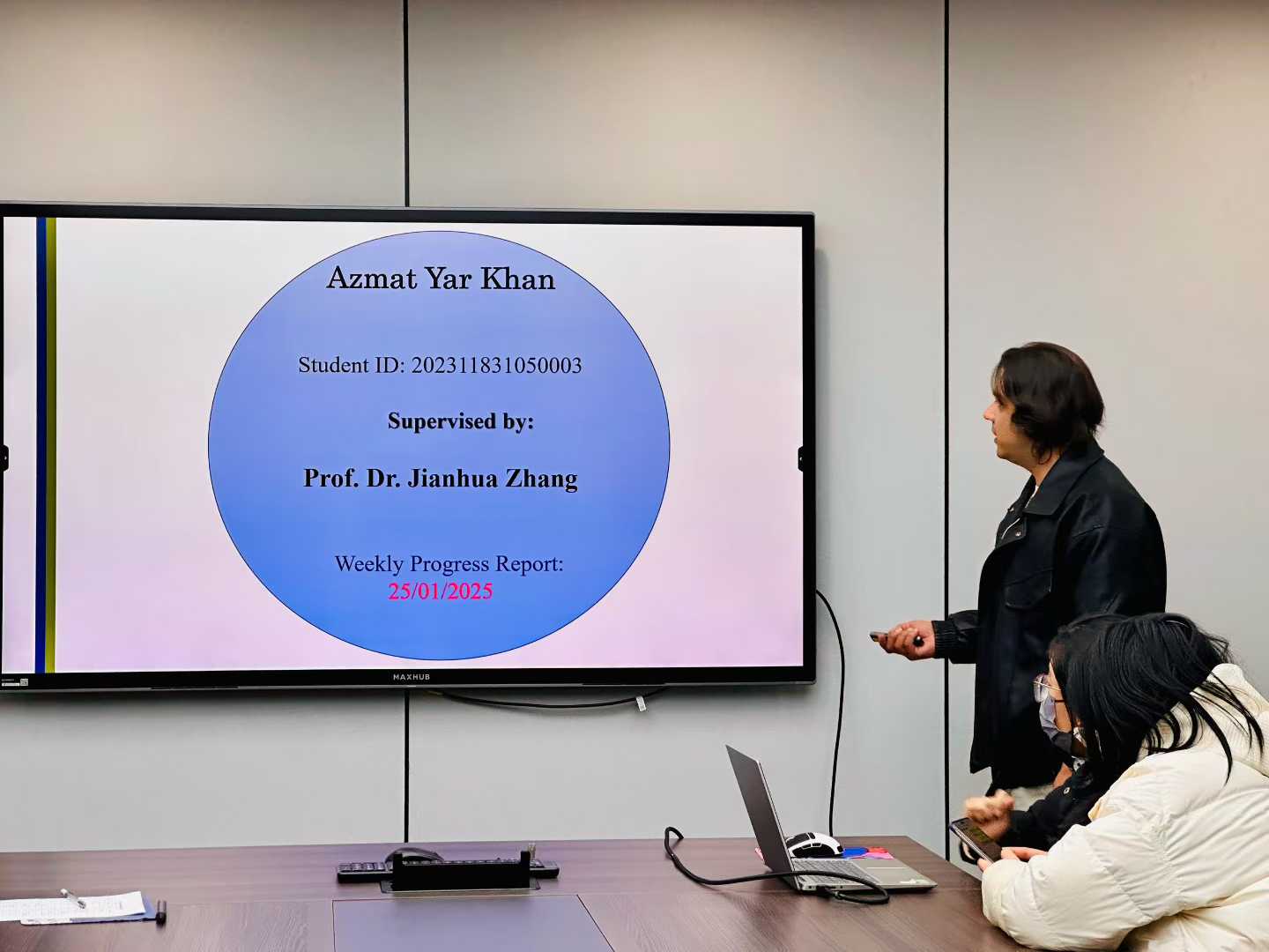 2026年1月25日晚,张建华教授主持召开研究生(硕士&博士)总第111次大人文交流暨2025-2026学年第一学期第13次学术交流会。会上,博士生Azeez/张中同学做了有关尼日利亚国情的大人文演讲;隶属于Batch 4的博士生Aly、Noman、Azmat、Maria、Shazzat、张何赞以及硕士生梁宏做了学术汇报。会后,张教授继续解答了部分同学的研究问题。会前,孙若男、孙肖廷同学有请假,Tariq、Yasir、Tufail、Farrah、Terefe、Rabia、Notob已履行手续回国或外出,Abbas、贾红雨、Ibrahim、Cletus无故旷会,石开轩未按要求做学术汇报且自1.13起未履行手续离校未归。
