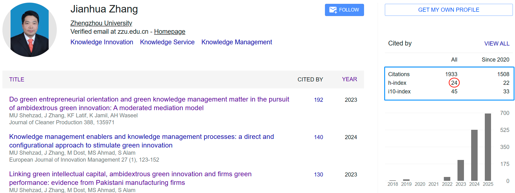 2025年10月4日,临近中秋,张建华教授科研H指数再迎加1来到24。成长的喜悦,团队的成长。