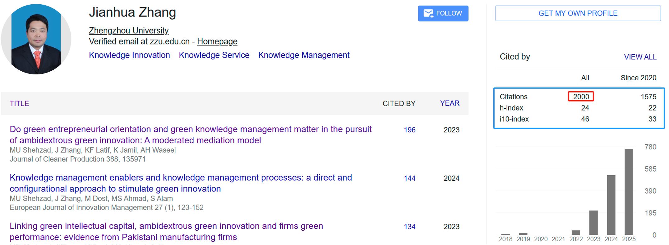 张建华教授团队科研论文总被引次数达到2000(2025-10-31)