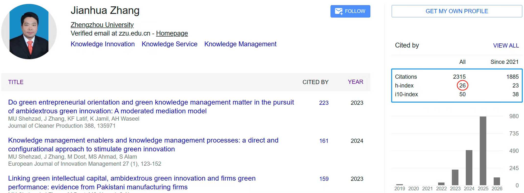 2026年2月8日,历80余天,张建华教授科研H指数再迎加1来到26。成长的喜悦,团队的成长。