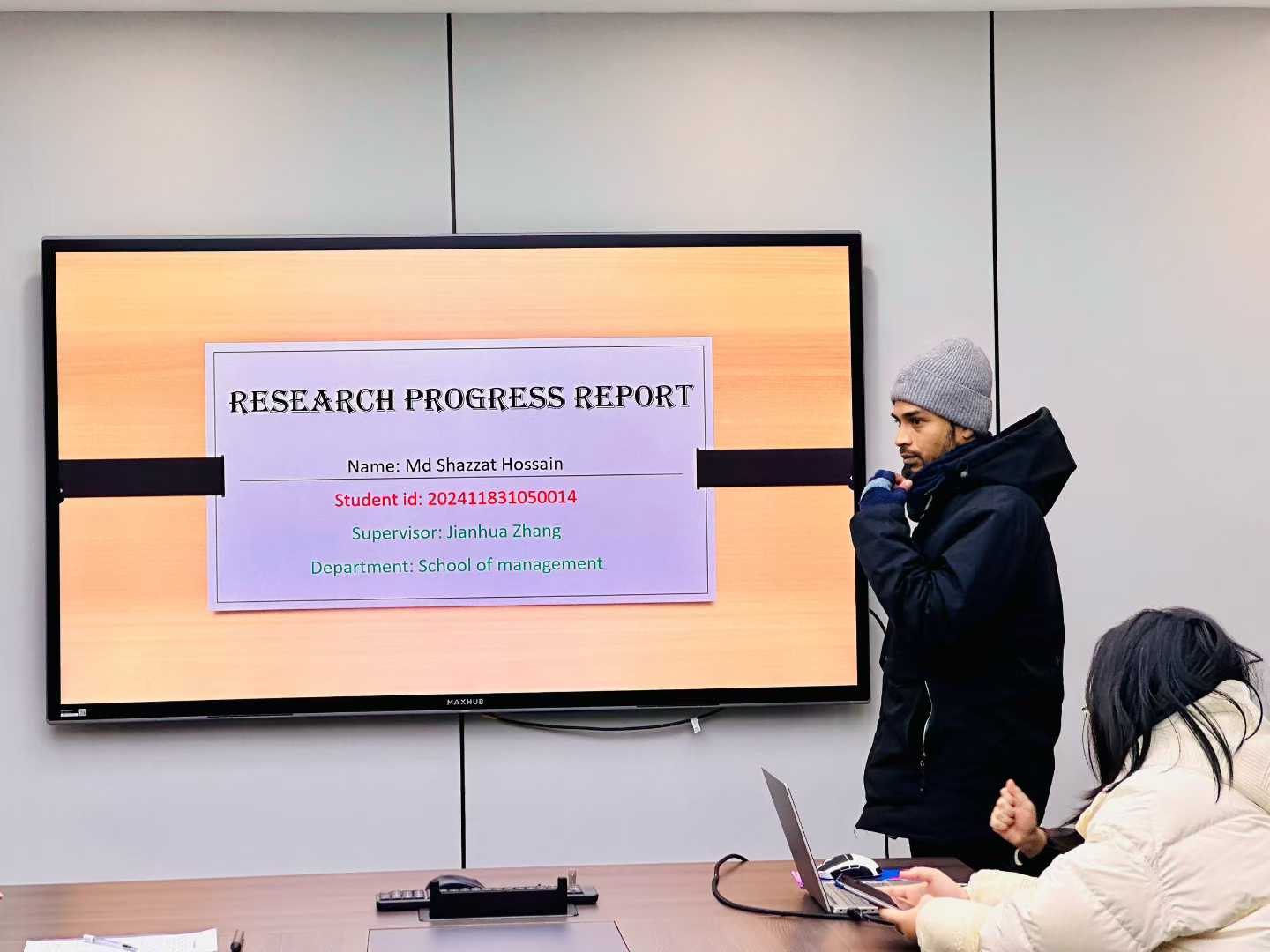2026年1月25日晚,张建华教授主持召开研究生(硕士&博士)总第111次大人文交流暨2025-2026学年第一学期第13次学术交流会。会上,博士生Azeez/张中同学做了有关尼日利亚国情的大人文演讲;隶属于Batch 4的博士生Aly、Noman、Azmat、Maria、Shazzat、张何赞以及硕士生梁宏做了学术汇报。会后,张教授继续解答了部分同学的研究问题。会前,孙若男、孙肖廷同学有请假,Tariq、Yasir、Tufail、Farrah、Terefe、Rabia、Notob已履行手续回国或外出,Abbas、贾红雨、Ibrahim、Cletus无故旷会,石开轩未按要求做学术汇报且自1.13起未履行手续离校未归。